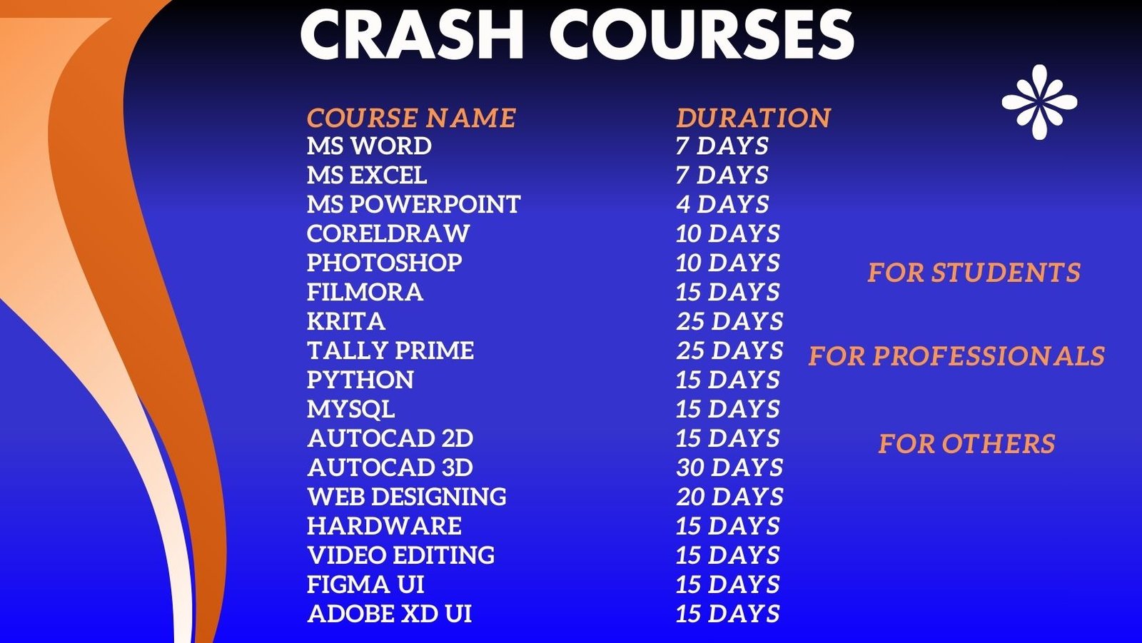 OFFICE AUTOMATION COURSE Languages PythonC - C# C++Java ( Core & Advanced )Mysql ( CBSE )SQL Server 2014 -2019 Certificate & Diploma Certificate (CCC- Advance MS Office - Tally Prime)DCADCFAADCAPGDCAHardware & Networking Engineering & Designing Web Designing Video EditingDigital MarketingFigma UI and Adobe xd Autocad 2d & 3dAdvanced Excel O’ LEVEL IN 7 MONTH COMPLETE CCC IN 2 MONTH COMPLETE Classes are in Hindi & English both Language “Having more skills means deserving a better pay package.” Z-TECH COMPUTER INSTITUTEInstitute is powered by "SEWS" Government of India Contact for Online Classes Enroll in Advanced Courses for FreelancingDigital Marketing - Wesite Designing - Video Editing ... Excellency in Teaching Z-Tech Computer Institute 4.9Reviews 22 k Youtube 7 kStudents Passed out Students Placed 1580+ In high Job Profile ★★★★★★★★★★ Rated 10 out of 10 Read more reviews Click here Follow here ALL CLASSES ARE CONDUCTED BY THE DIRECTOR PROJECTOR / SCREEN CLASS ROOMSLATEST FAST COMPUTERS 100% SATISFACTION IN EVERY DAY CLASS